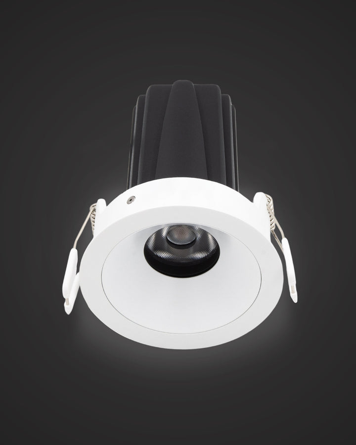 New from Arcolight: the Darc downlight family is now available to ship. Three sizes for three distinct applications — the Darc 80 with CRI 97 and IP54 rating for demanding specifications, the Darc 60 for standard applications, and the Darc 40 for ambient layers. Seven fascia styles on the Darc 80. Interchangeable plaster or spring trims from a single cutout. All models available in four finish combinations.