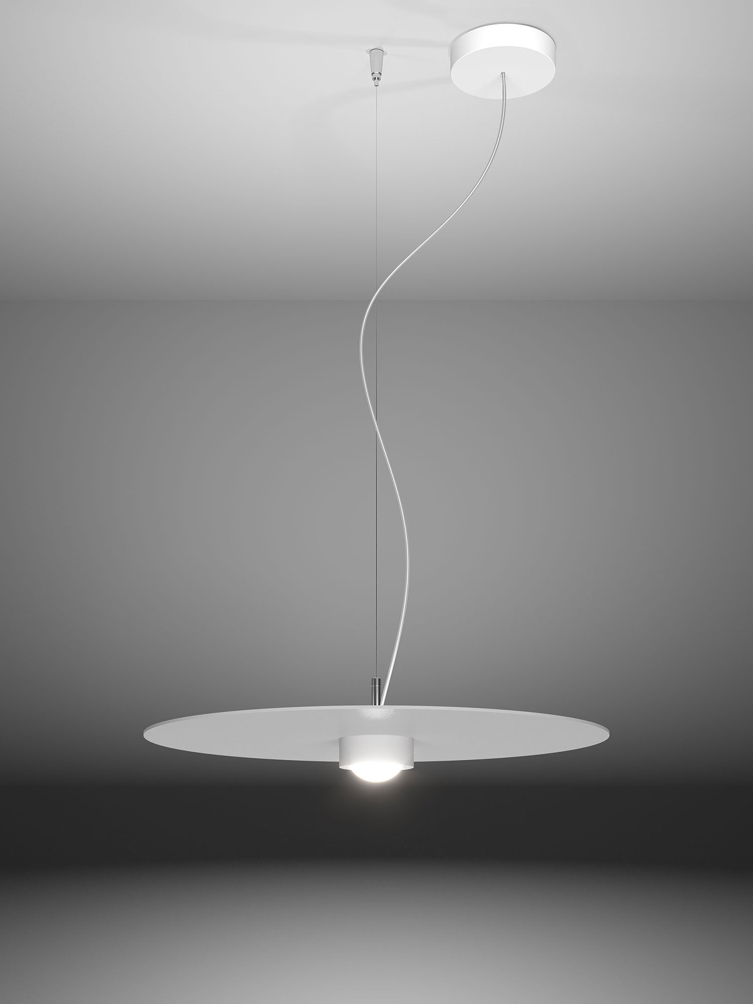 The Collide Pendant emits light via an LED module housed within the central disc. Made entirely of aluminium, Collide features a minimalist design ideal for contemporary aesthetics. Available in standard white or in natural, satin, or metal finishes.
