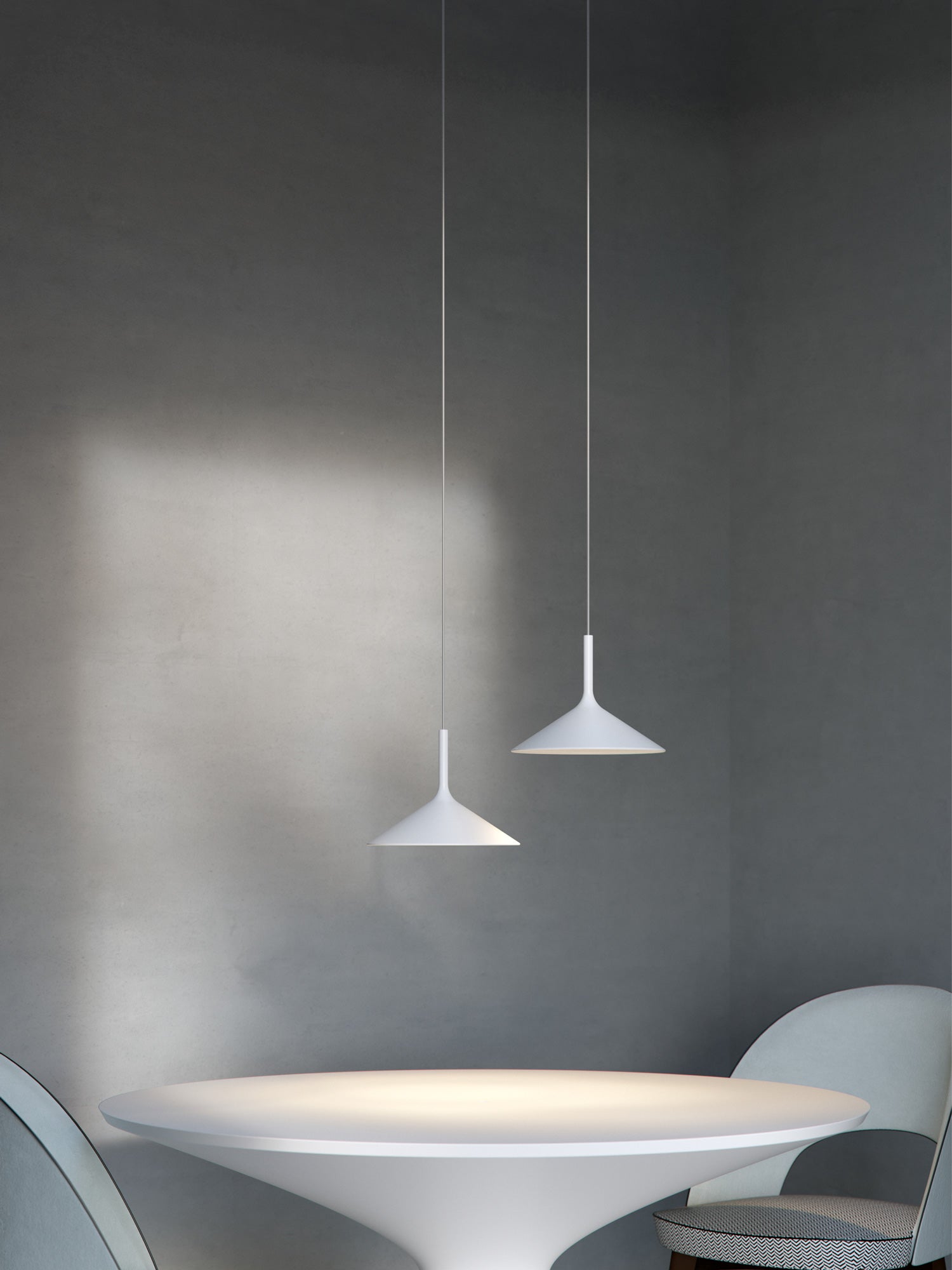 Slim and sleek as a cocktail glass, Dry is a suspended LED lamp in coated steel. Equipped with a 16W LED source, the Dry pendant styles well in minimalist modern spaces.