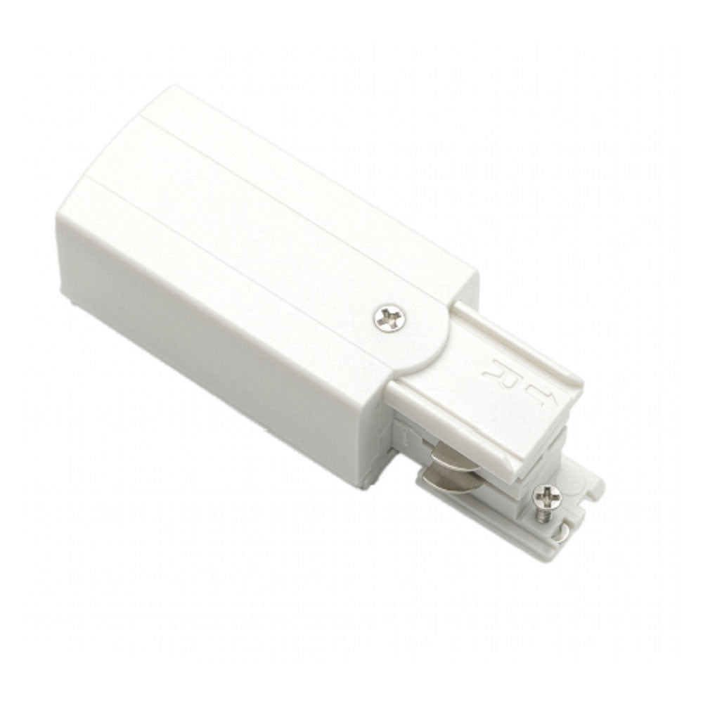 The Arcolight 3C Live End (Left) is a left-configuration power feed connector for the Arcolight Three Circuit Track system. Available in textured black or textured white finish. Part of the Arcolight collection curated by Studio Italia.