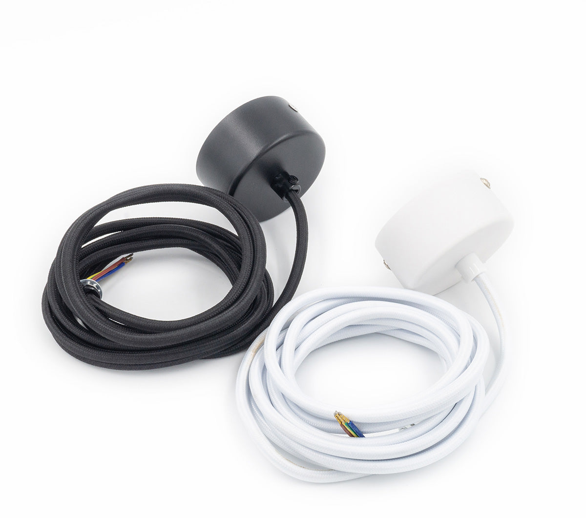 Suspension kit for the Arcolight Radiant. Enables the Arcolight Radiant Spotlight to be used as a pendant light through a simple conversion process. Includes surface-mounted canopy (70x35mm) and textile-covered cable allowing for up to 3 meters suspension. Available in black or white finish. Arcolight Radiant sold seperately.