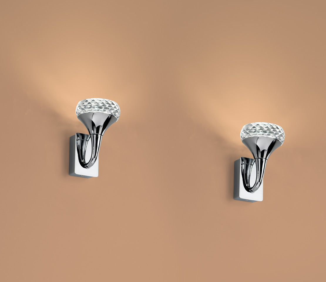 Adorn your wall with the elegant Fairy Wall Light. A collection of wall lamps with chromed metal frame and fine glass diffuser. Built-in LED light source with a diffused warm emission.