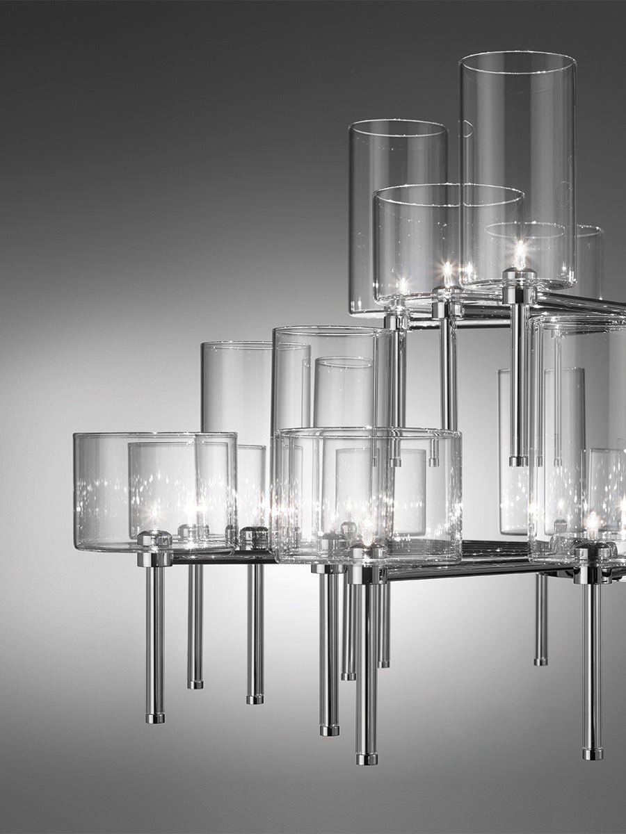 The Spillray collection of pendant lamps is an elegant shape play on upturned goblets. The diffusers are made of glass with chrome-plated metal canopy, gracefully illuminating any area. Available in several sizes, configurations and finish options suitable for a variety of applications. Single pendant also available with surface mounted or recessed canopy.