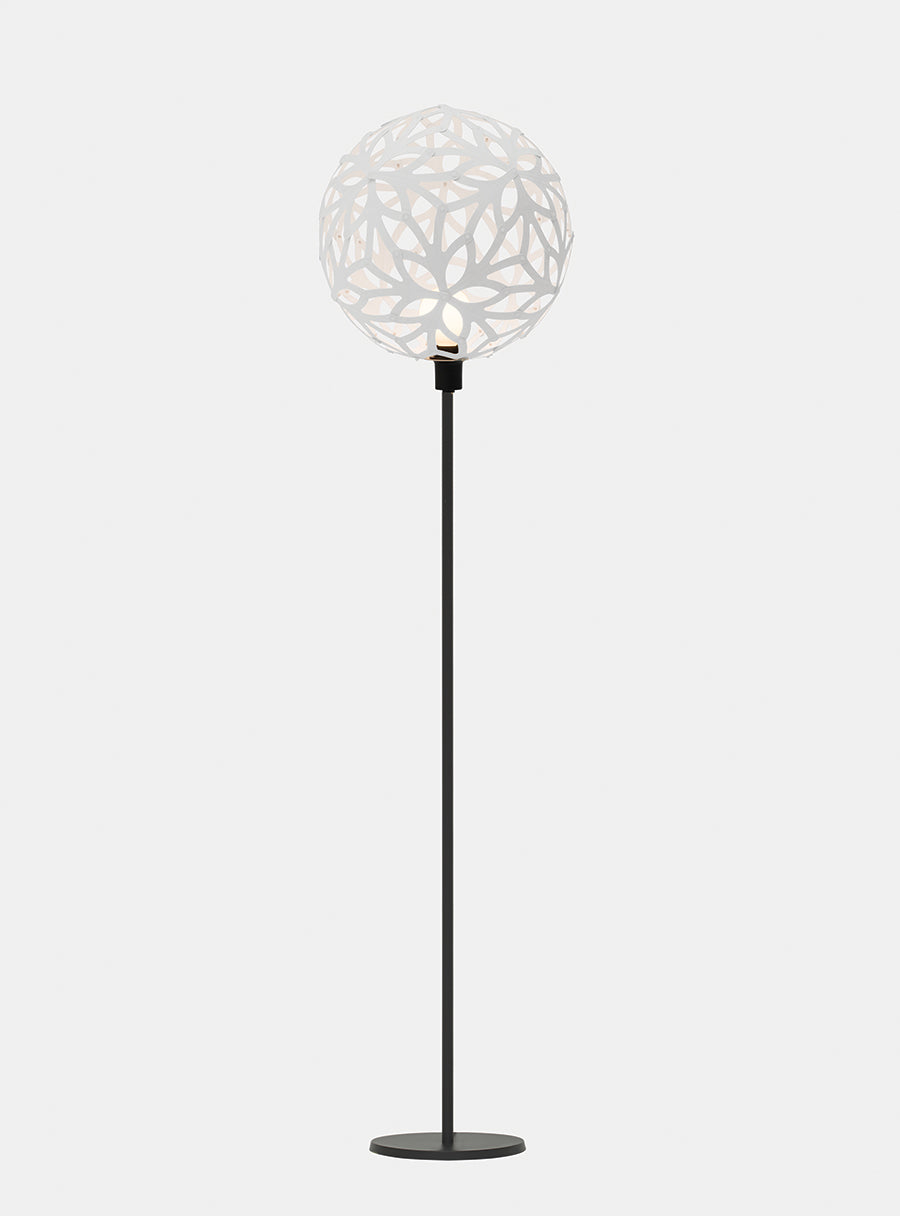 Floral was designed three years after the Coral light. Like the Coral, the Floral pendant is based on geometric polyhedra forms, but with a softer and more decorative design to the structured Coral. Thanks to a special adapter, the iconic Floral is now available as a table lamp with black or white base option. These lights make excellent accent lamps, casting intricate shadows against nearby walls.