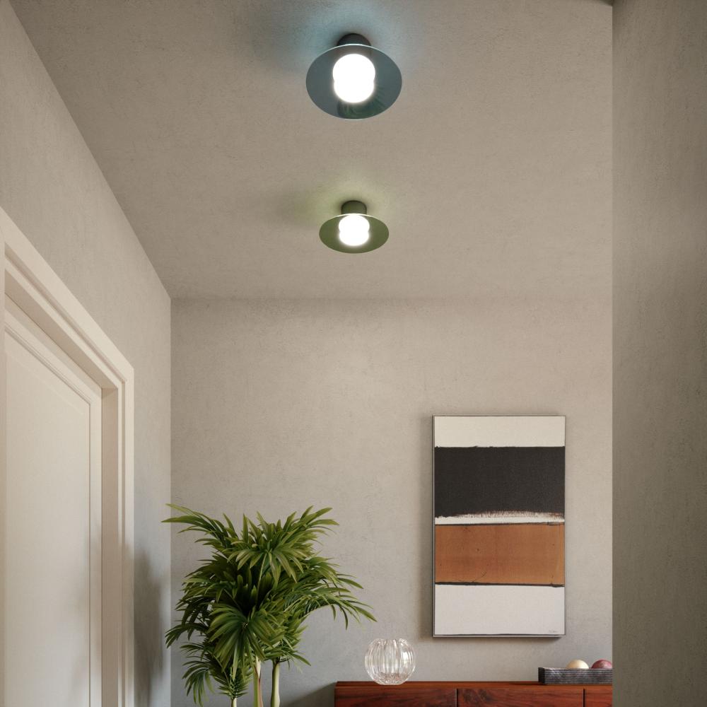 The Hydra collection captures the brilliance of a star in its design. Inspired by the luminous Hydra constellation, this lamp features a central frosted glass bulb that evenly reflects light onto a handcrafted glass shade, creating a uniform glow. With a minimal yet elegant design, Hydra adapts to any space. This surface mounted ceiling light version is available in two sizes with various finish combinations. Made in Italy.