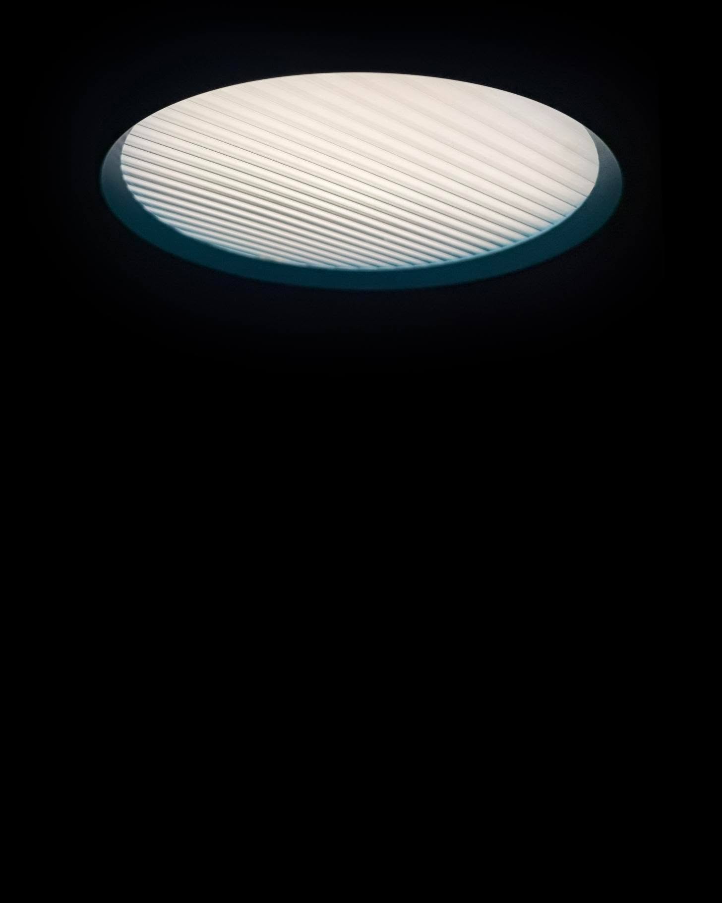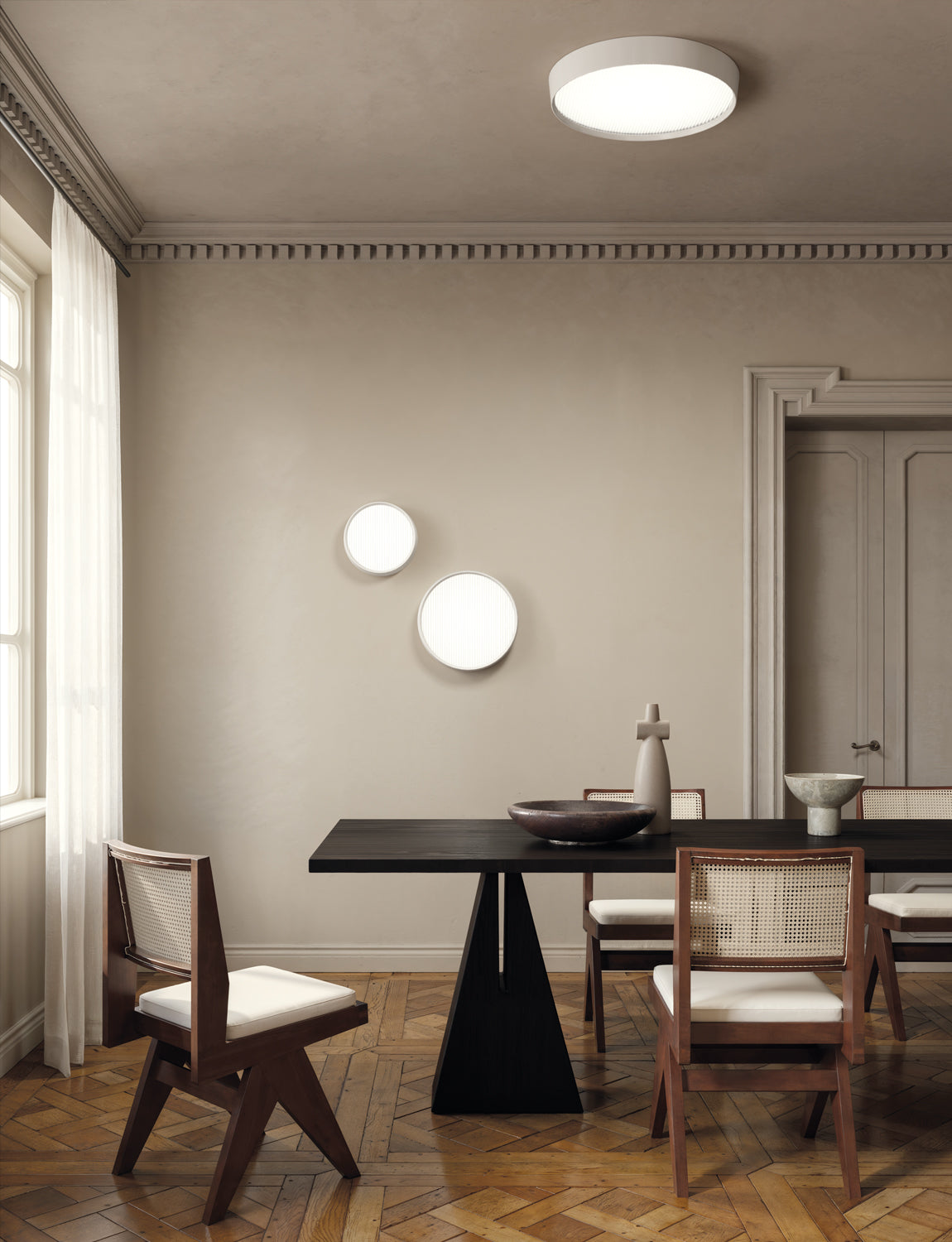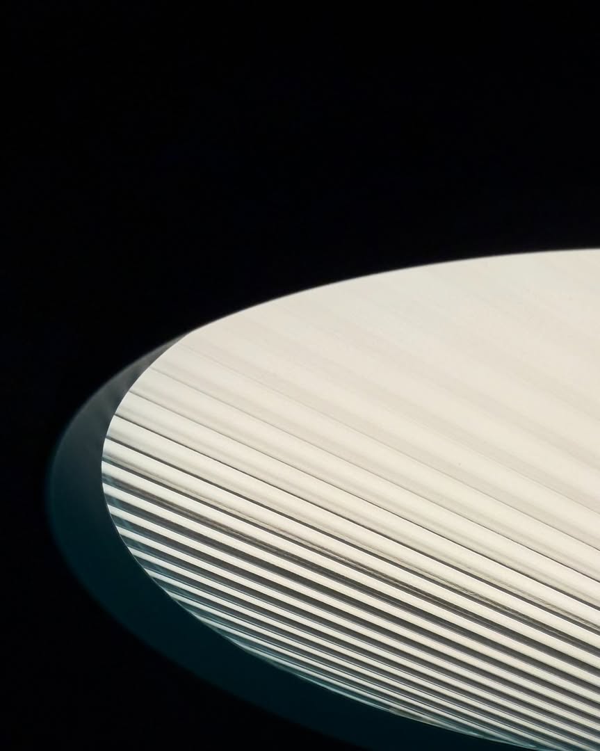 Orbis brings light to life with shifting vibrancy as the viewing angle changes. A disc of light, a pure form subtly extending forward, conceals a secret within its finely crafted glass. Both essential and dynamic, it is a perfectly functional object, elevated by meticulous attention to detail. Surface-mounted for wall or ceiling applications. Available in a variety of sizes and finish options. 2700K version available on request.