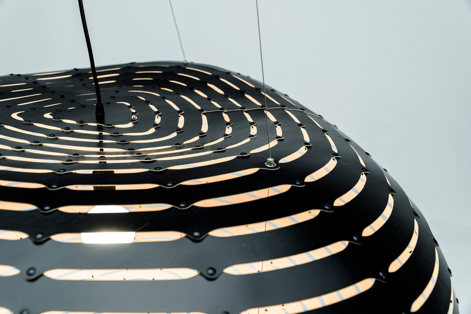 Cloud by David Trubridge was first launched in 2008 as part of the Spiral Islands installation of matching lights and settees. It was inspired by the clouds that David saw sitting over small islands across the Pacific Ocean, which were used by Polynesian navigators to find islands from afar. The original Cloud lights were made with frosted plastic but were later discontinued due to the negative environmental impact of the material. Cloud has been reimagined in this new version which is made almost entirely of bamboo plywood. This allows light to shine through while offering a similar visual lightness as the former translucent plastic version.