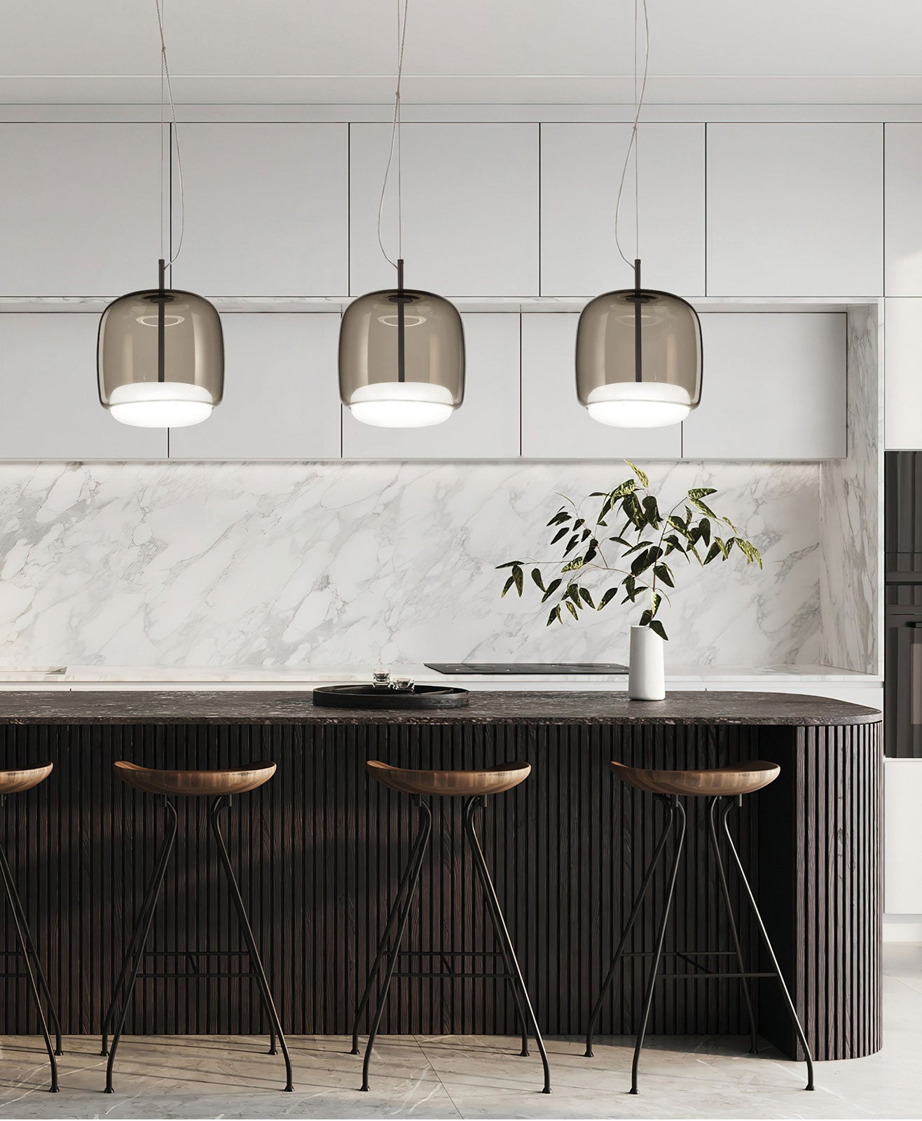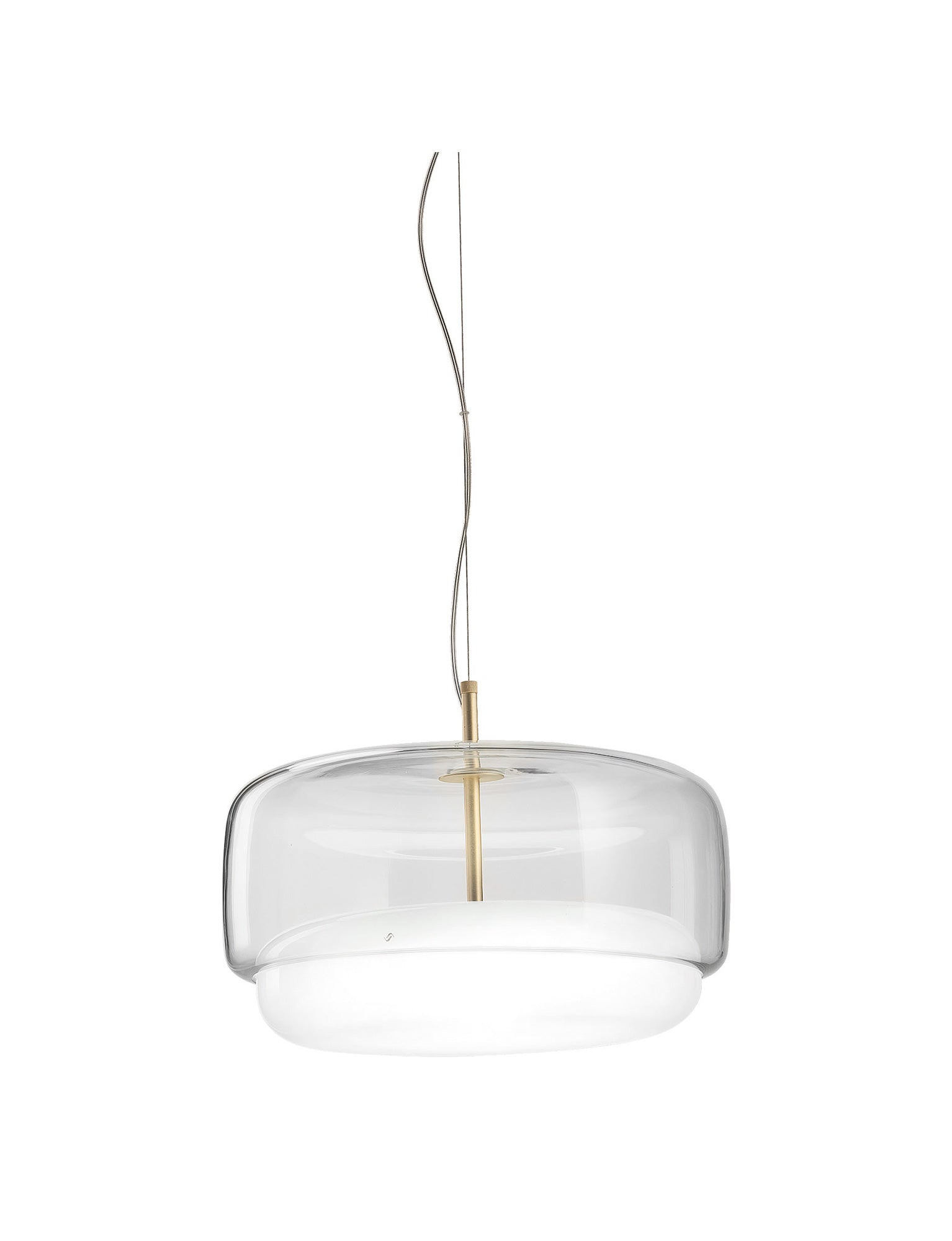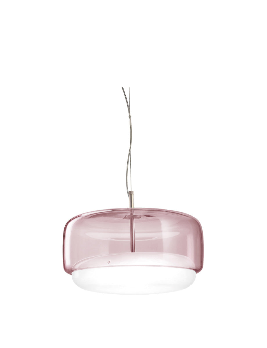 Essential, sinuous and delicate, Jube was born from the union of two mouth blown glasses that, once assembled together, create an overlapping, ton sur ton effect with retro charm. Thanks to a powerful waterjet which perforates glass with holes of a very large diameter, the fusion of the glasses is perfectly integrated, allowing two glasses to look like a single piece. The lower glass is glossy white, with various colour options for the upper glass. The LED light source produces a widespread and powerful light. Available in large and small sizes.
