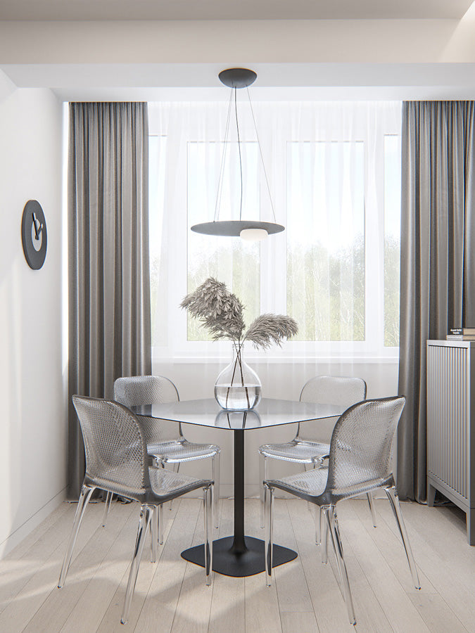 Kwic, designed by Serge and Robert Cornelissen, is a pendant light with a minimalist contemporary design. A semi-spherical blown glass diffuser contains an integrated LED light source and overlaps - in a decentralized position - with a circular painted aluminium disk. Kwic embues a space with a powerful light which radiates from the opaline white diffuser, and a delicate glow that filters through the back of the frame. Depending on the location, Kwic can be a discreet presence or a point of focus in a room. Available in a variety of sizes and finishes.