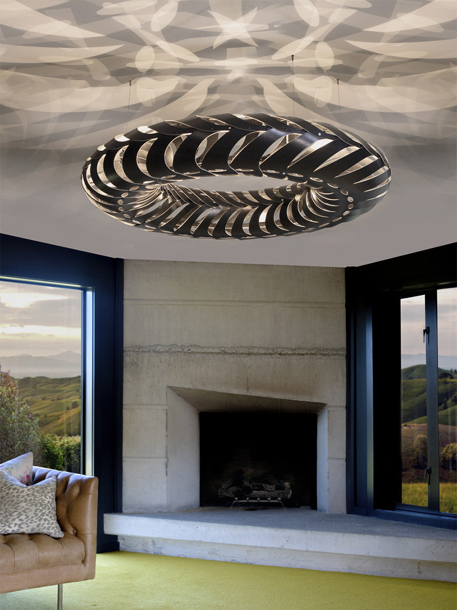 Maru is the newest concept luminaire from David Trubridge. Made from 60 identical components that clip together to create an elliptical form. The name Maru is found in both New Zealand Maori and Japanese languages, with references to the cycle of life. Maru casts complex patterns on neighboring surfaces, creating a unique ambiance.