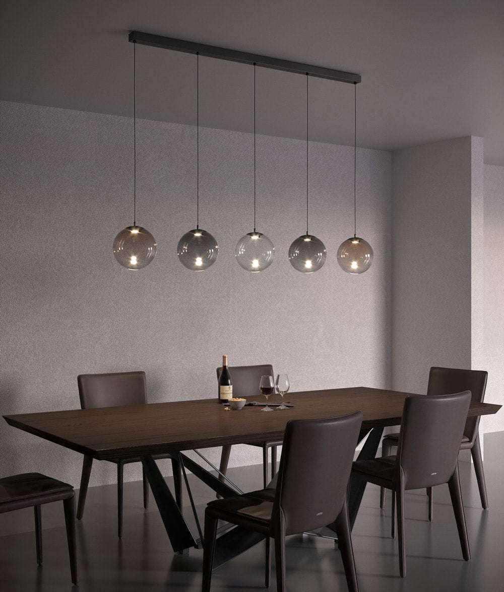 Pit is a simple and elegant pendant lamp hand-made by Cangini e Tucci. An in-built LED source refracts within the delicate mouth-blown glass diffuser for a unique illumination when switched on. Available in three sizes in a variety of glass and metal finish combinations, Pit offers a wide range of installation possibilities.