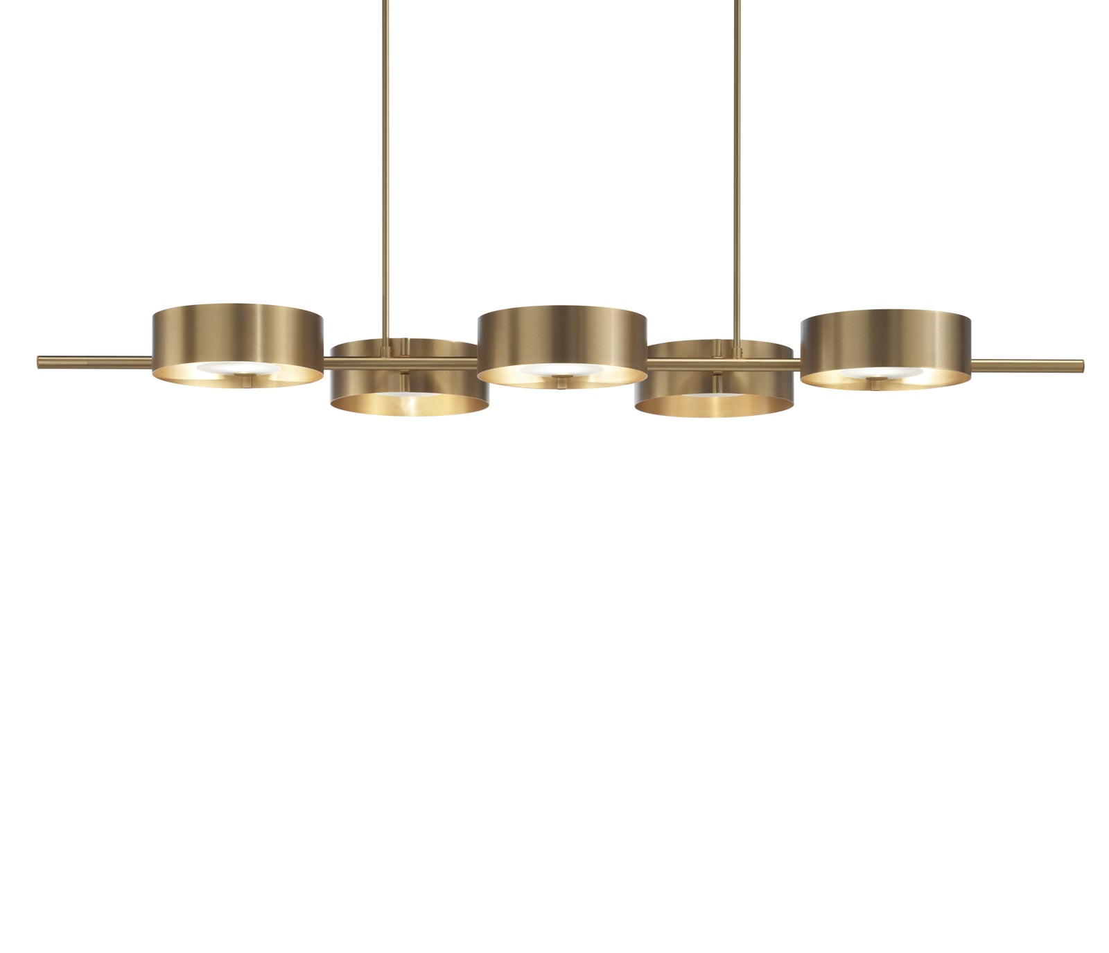 What form would sound take if it were a product? Designer Giovanni Battista Gianola and Masiero attempt to answer that question with the Sound collection of contemporary luminaries. With a form evoking the expansion of sound waves, Sound combines circular metal elements with decorated glass diffusers to create a piece which speaks to our senses. Each source casts light both upwards and downwards, making the Sound horizontal pendant perfect for feature lighting applications. Available in lamp holder or LED version in various sizes and finish options. Made in Italy by Masiero.