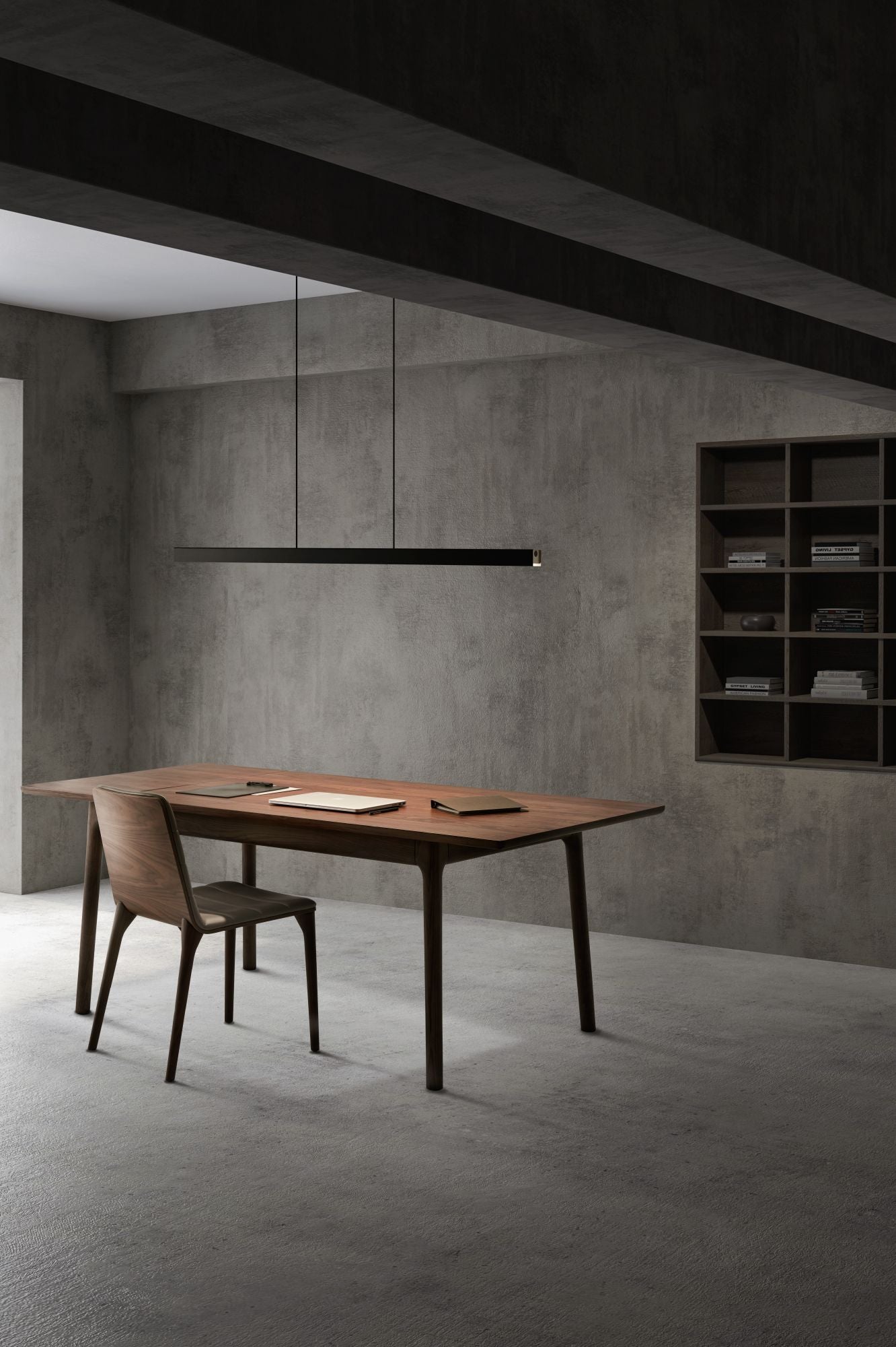 The Square Pendant is simple yet sophisticated in both function and design. The minimalist linear lamp is controlled by touchless sensors located on one end of the fixture. Not only is there an ON/OFF and dimming function, but the Square also exhibits the ability to adjust color temperature in four flexible settings: 2700k, 3000k (default), 3400k, and 4000k. The Square features an integrated LED source with a Color Rendering Index of 98 for vivid and natural color environments. The versatile design makes the Square pendant suitable for work spaces to ambient settings. The exterior is available in Black or White finish, while the inner surface is finely coated in brushed gold.