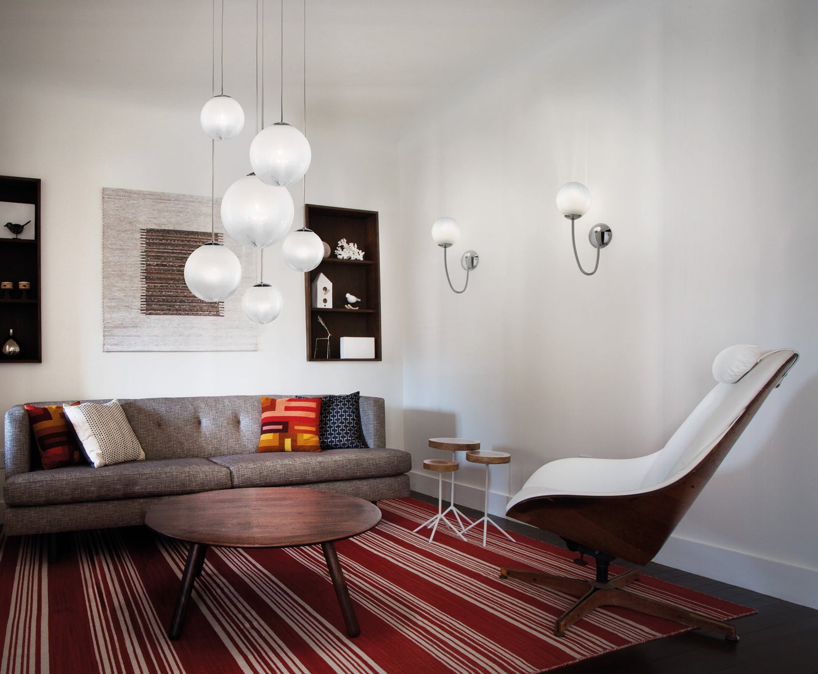 Simple and elegant, the Puppet Wall Light is perfect for contemporary spaces. A mouth blown glass diffuser features an irregular lined degrade finish, producing a soft cloudy pattern on surrounding surfaces. Available in a variety of finish options.
