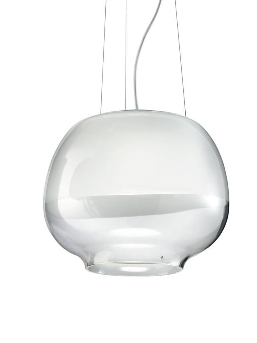 With Mirage, Giovanni Barbato gives glass the visual preponderance it deserves by removing everything that does not belong. This lighting system is all about simplicity and elegance with the soft lines of its curvilinear design. Mouth blown glass directs and spreads the LED light source in any environment, emphasizing its brightness.