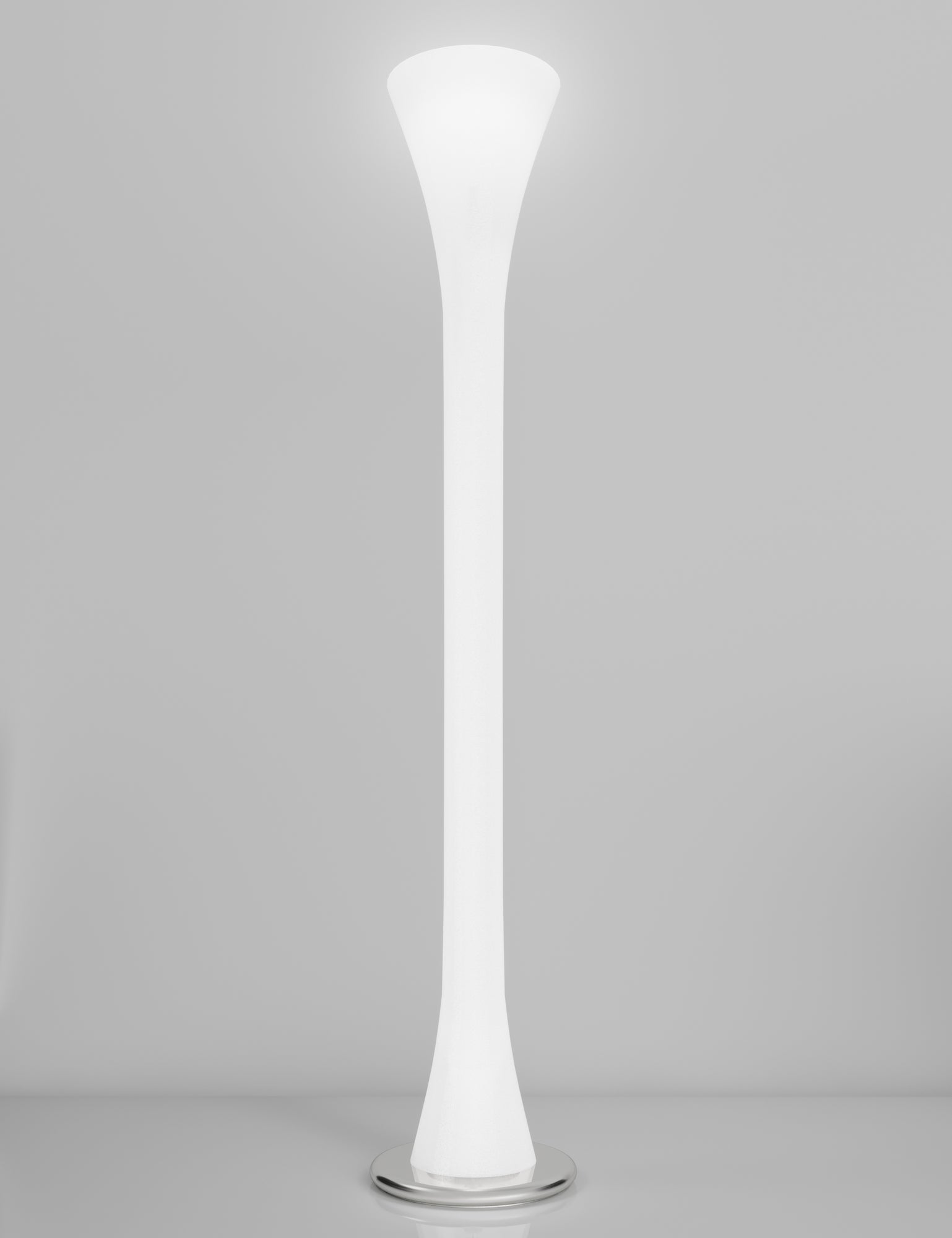 Lepanto floor lamp by Vistosi. A light sculpture of classical inspiration made in Murano glass requiring a high degree of technical skill. The 'pulegoso' finish adds a unique organic texture to the surface of the glass.