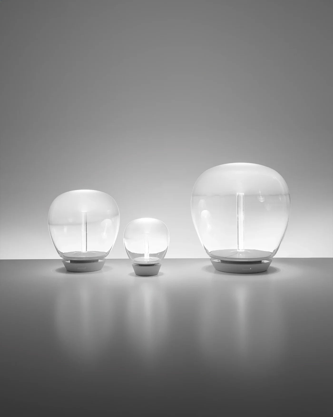 Inspired by the timeless art of Venetian glass-blowing, Empatia table lamp is the result of a close collaboration between Artemide and master glass artisans. Each piece is individually crafted, celebrating the delicate balance between transparency and opacity to create a soft, glare-free glow. The glass diffuser is paired with a high-performance LED, designed separately to enhance thermal efficiency and light quality. A transparent light guide channels illumination seamlessly into the hand-blown glass, creating a luminous effect that beautifully enhances a space. Available in three sizes. Designed by Carlotta de Bevilacqua and Paola di Arianello and made in Italy.