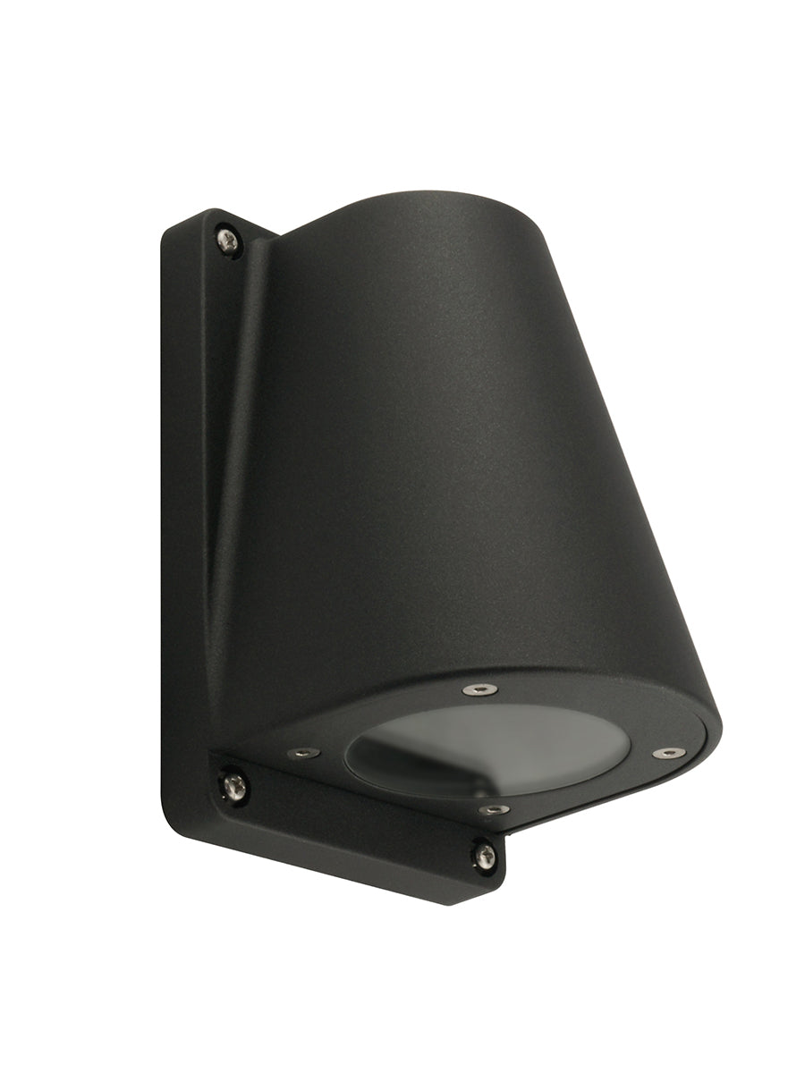 Boss surface mounted outdoor wall light with in-built LED. Aluminium body coated with a salt resistant finish. Boss has an ingress protection of IP65 and an impact protection of IK06 for outdoor applications. Available in anthracite finish. French designed. Phase dimming.