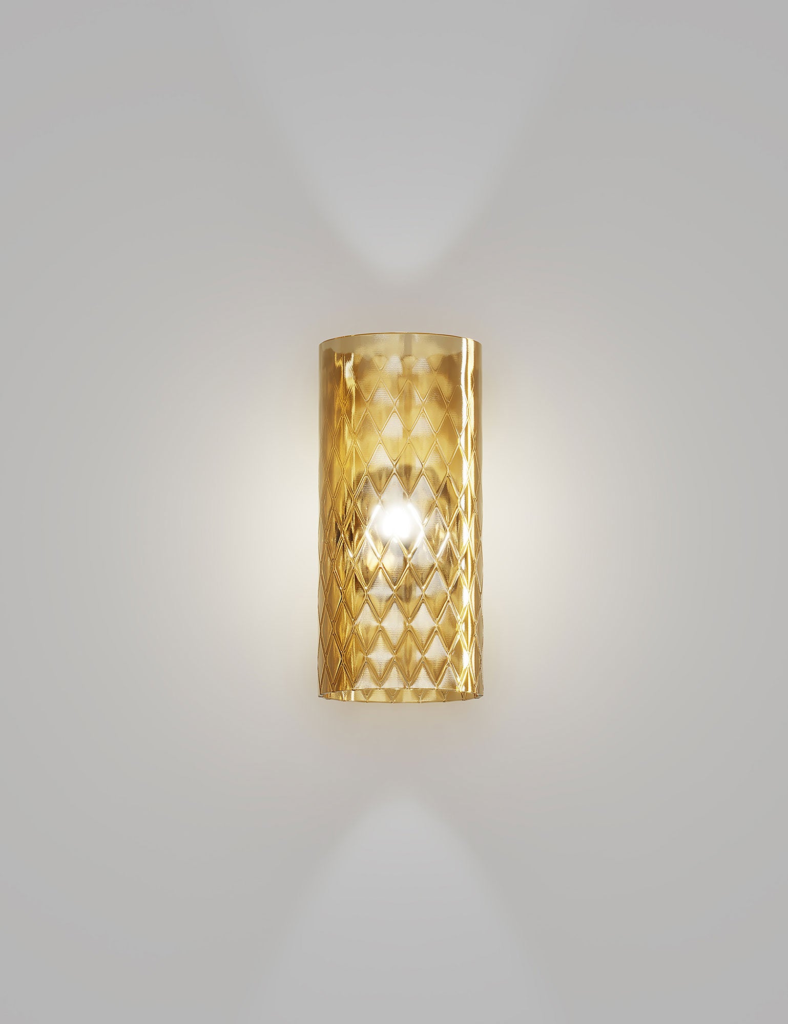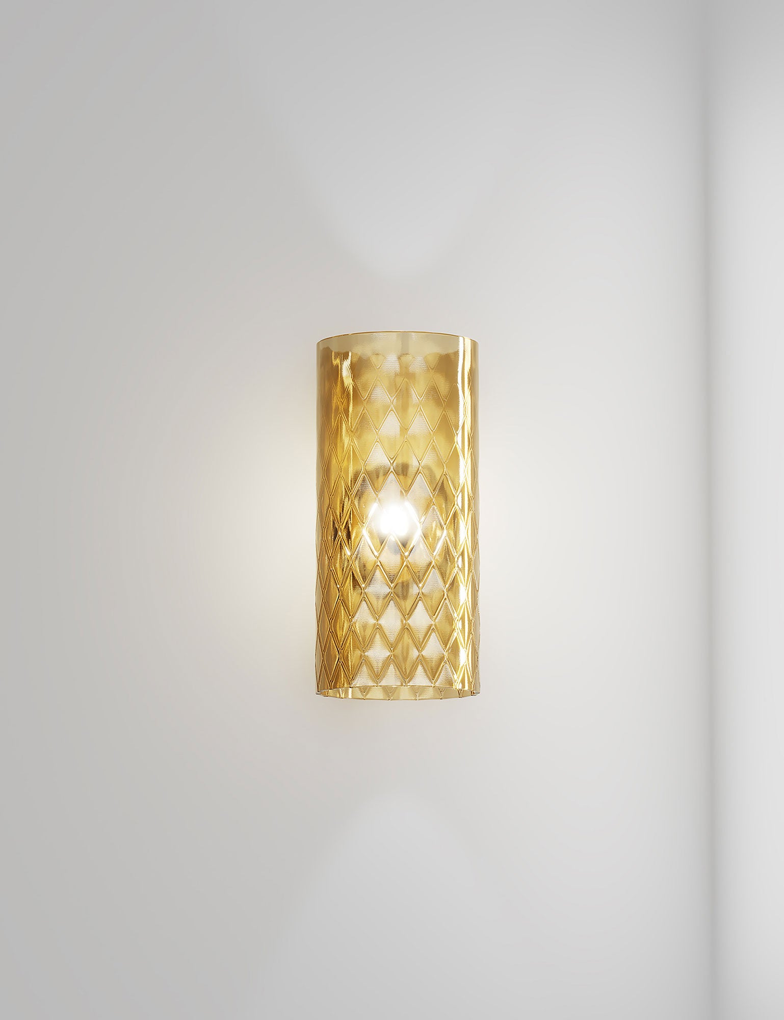 Designed by Francesco Lucchese, the Armonia collection is inspired by history, blending functionality and emotion. Armonia combines modern design with classic glassworking techniques. Available in a rage of colors and textures, Armonia creates a warm, enveloping light. Armonia 18cm wall light features a balloton finish.
