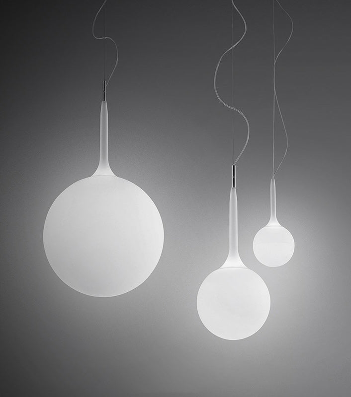 Castore features a hand-blown white glass spherical diffuser with a removable luminous stem that creates a gentle transition from focused to ambient light. Crafted with zamac base, thermoplastic resin stem, and opal glass, it emits a soft, warm glow ideal for creating tranquil atmospheres in residential, hospitality or commercial spaces. Available in 4 sizes. Made in Italy by Artemide.
