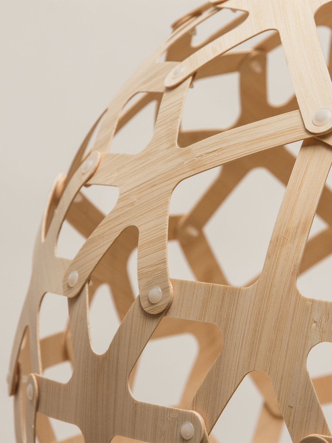 The Coral Pendant Light by David Trubridge, inspired by nature and geometric polyhedra, is a design classic and David's first lighting creation. Made from a single component repeated 60 times, it combines intricate craftsmanship with versatility. Available in five sizes and a range of finishes-including natural or painted bamboo-it can be used as a striking single piece or arranged in clusters for dramatic effect. Coral's timeless design has won numerous awards and remains a popular choice for contemporary interiors. It can also be adapted as a table lamp, offering endless possibilities for any space.