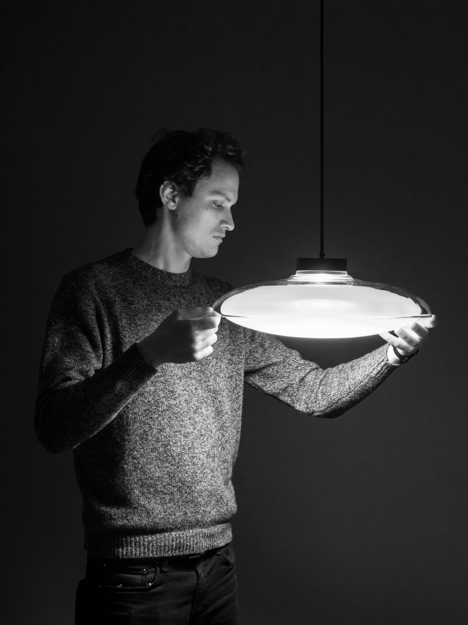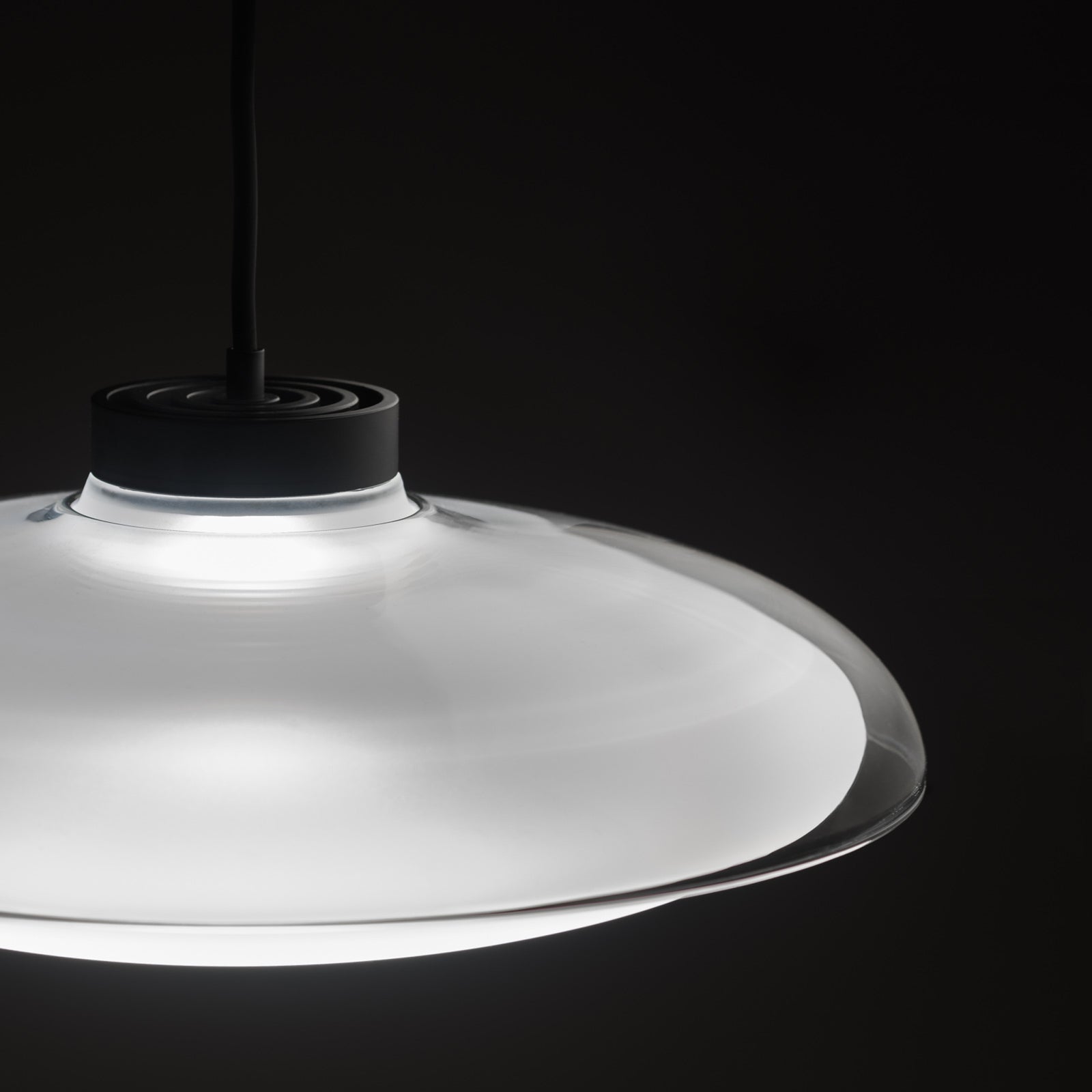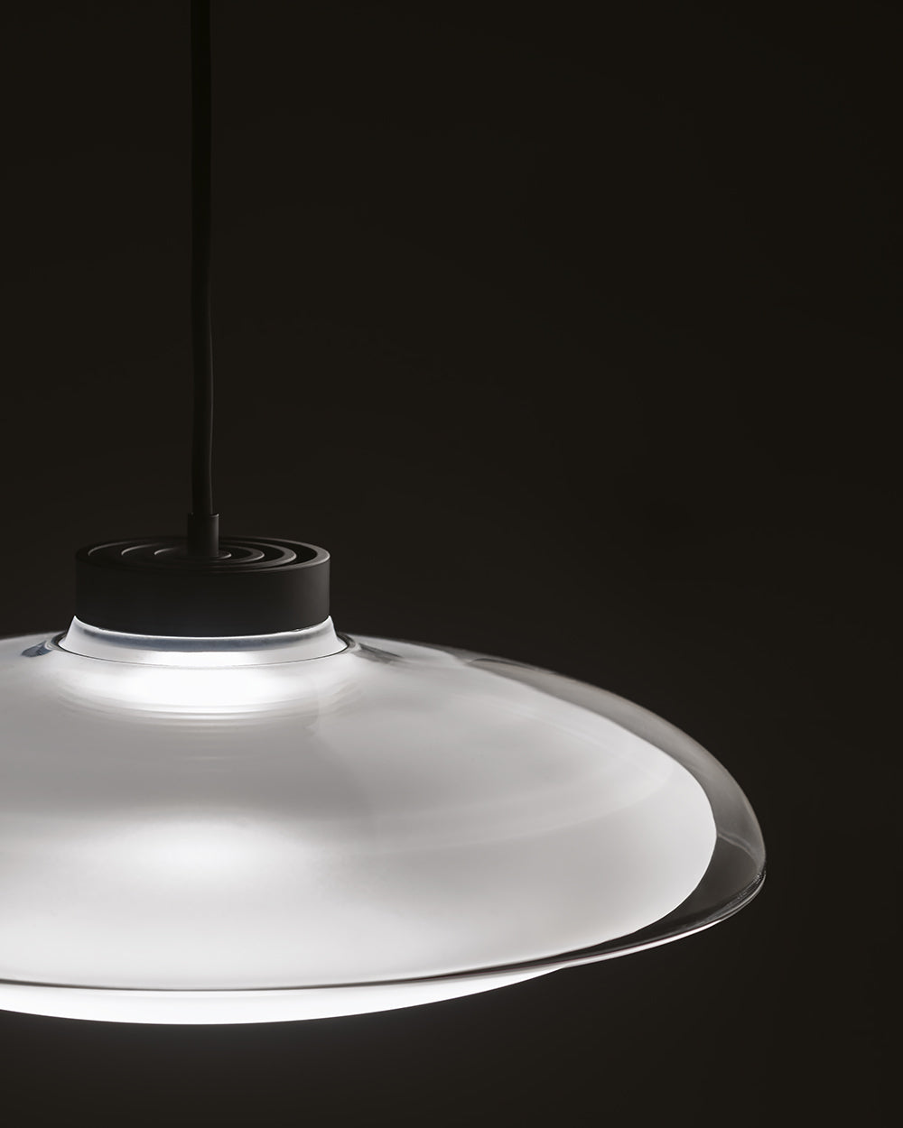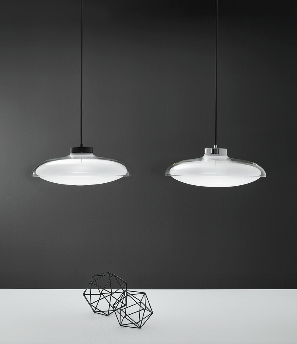 The concept behind the Fiji Pendant was to give light a form. A smooth elliptical glass shade cradles a frosted glass sphere, evoking a sense of depth while gently emitting light outward. The high power LED, optical system, wiring and fastenings are all housed within the CNC aluminium heatsink - an innovation by Mandalaki Studio which maximises aesthetic by compressing all mechanical and electrical functions within a single sophisticated component. Available in three sizes in a variety of finish combinations. Made in Italy by masters of glass Cangini & Tucci.
