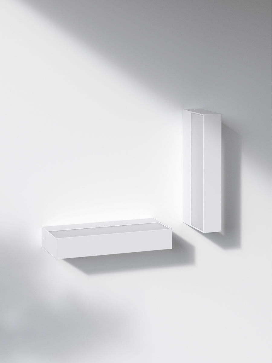 InOut Wall Light is an LED wall lamp with a clear-cut profile. With an IP rating of 65, InOut is the perfect lamp for both indoor and outdoor use. Aluminium body with two glass plates which shield the direct LED light and diffuse it evenly throughout the space. InOut W1 emits light in a single direction (up or down) while W2 emits up and down.