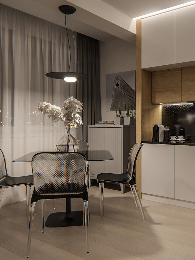 Kwic, designed by Serge and Robert Cornelissen, is a pendant light with a minimalist contemporary design. A semi-spherical blown glass diffuser contains an integrated LED light source and overlaps - in a decentralized position - with a circular painted aluminium disk. Kwic embues a space with a powerful light which radiates from the opaline white diffuser, and a delicate glow that filters through the back of the frame. Depending on the location, Kwic can be a discreet presence or a point of focus in a room. Available in a variety of sizes and finishes.
