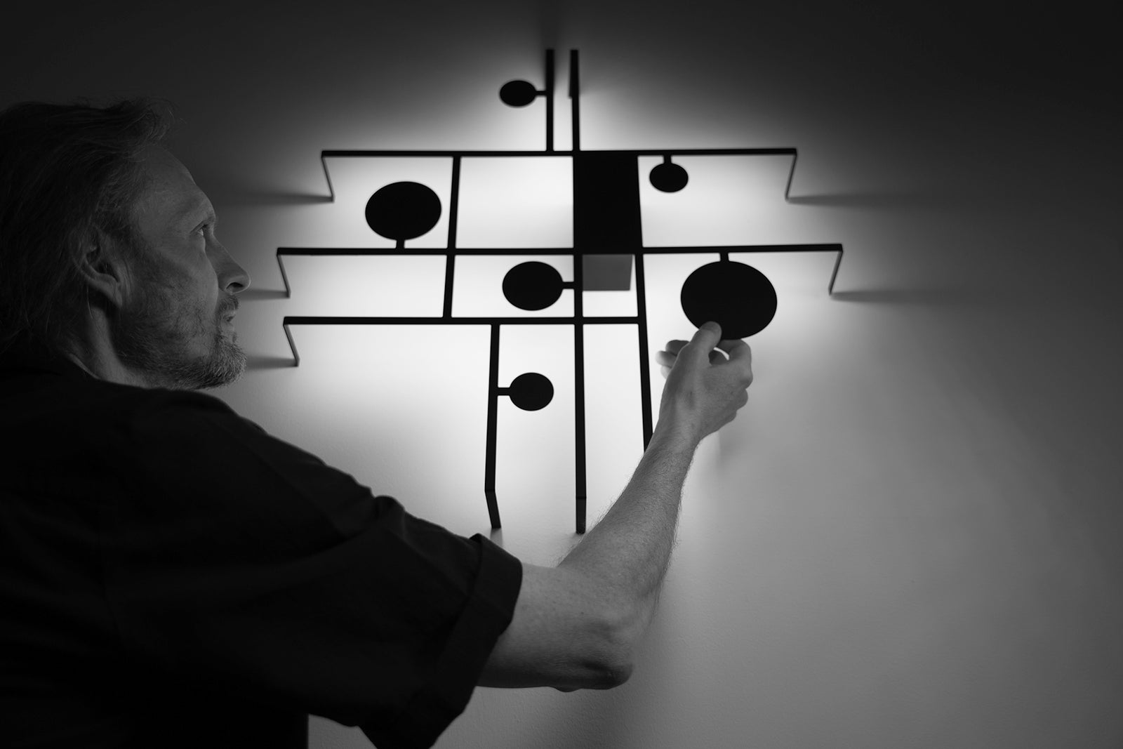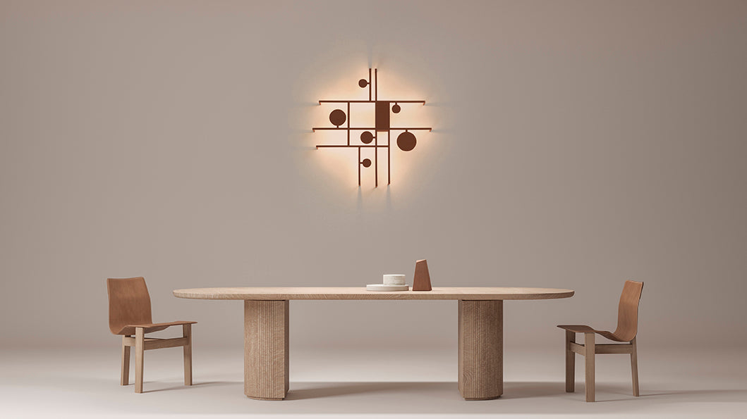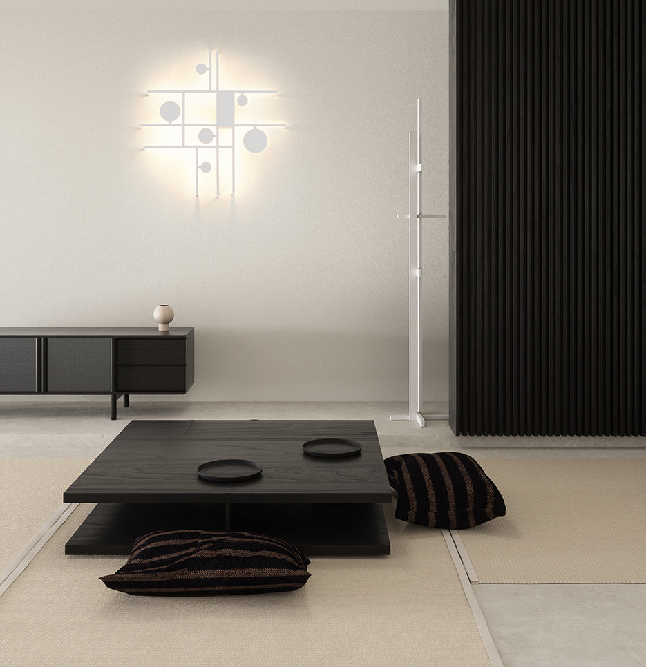 Manifesto is a creative play of shapes and paths of light. With a clear neoplasticist influence, the fixture is characterized by stylistic audacity and aesthetic balance. When the light is off, the lamp manifests itself as a abstract sculpture affixed to the wall. When the light is on, it is surrounded by a luminous halo which traces the boundaries of manifesto's form, enhancing its impact. Designed by Timo Ripatti and developed by Axolight.