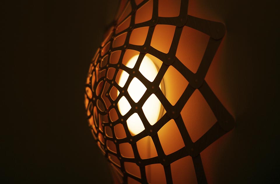 Sunflower is a wall light shade that can be mounted over an existing wall sconce. It is a sculptural geometric form based on David's inspection and love of the patterns found in nature. The first kitset wall shade from David Trubridge, Sunflower is a simple and easy way to freshen up existing interiors as well as a sculptural lighting installation. Made from environmentally sustainable bamboo.