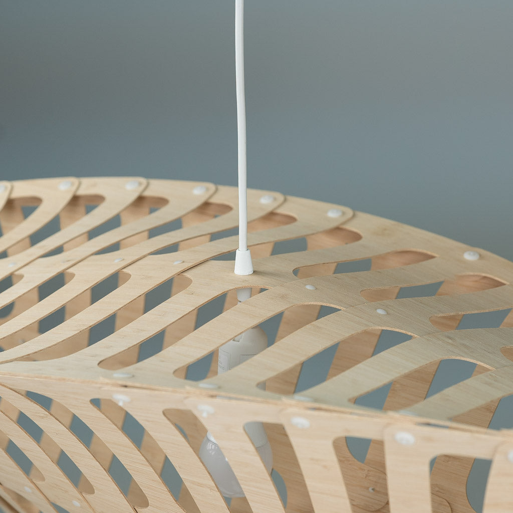 Based on the award-winning Navicula feature light, Toru is crafted from strong, multi-layered bamboo plywood creating a natural skeletal skin. The light's unique three-sided shape is the third pendant light inspired by microscopic diatoms and is named after the Te Reo Maori word for "three". The light adds an element of sculptural nature as it can be installed either horizontally or vertically. Toru's three sides create a mesmerizing twist that interplays light and shadow, providing a warm and welcoming glow that's perfect for dining tables, lounges, foyer, reception or as a corner statement piece. Sustainably made in New Zealand and available in a variety of sizes and finish options.