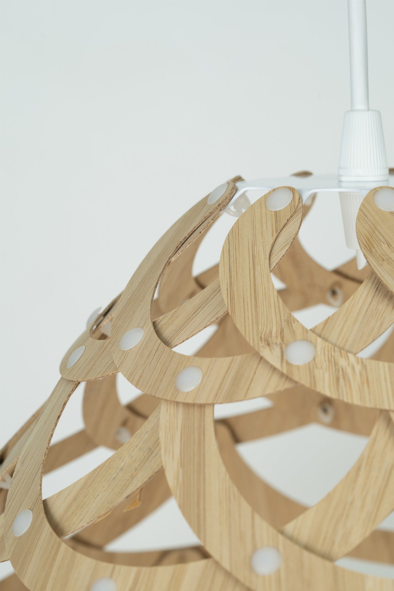 Tui by David Trubridge is named after the native Aotearoan bird which inspires it's design. Just like the intricate plumage found around the birds' neck, bamboo half-rings are woven into a basket form. Tui would sit perfectly over a dining table, kitchen counter or equally hanging in a stairwell or entrance. Available in the full range of Trubridge finishes in small, medium, and large size.