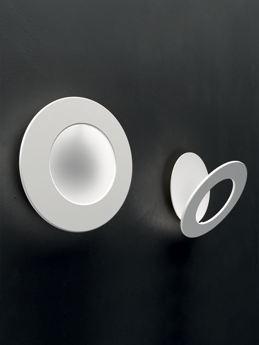 The versatile Vera lamp is composed of a reflective disc where a luminous brushed aluminium ring rests. The light disc be manually adjusted 360 degrees parallel and 90 degrees perpendicular to the wall, providing a wide array of direct or indirect lighting options. Vera is equipped with a high output LED and can be installed as wall or ceiling lamp. Available as 21cm, 26cm, or 31cm version in a variety of finish options. The simple, elegant design of the Vera makes it ideal for contemporary interiors.