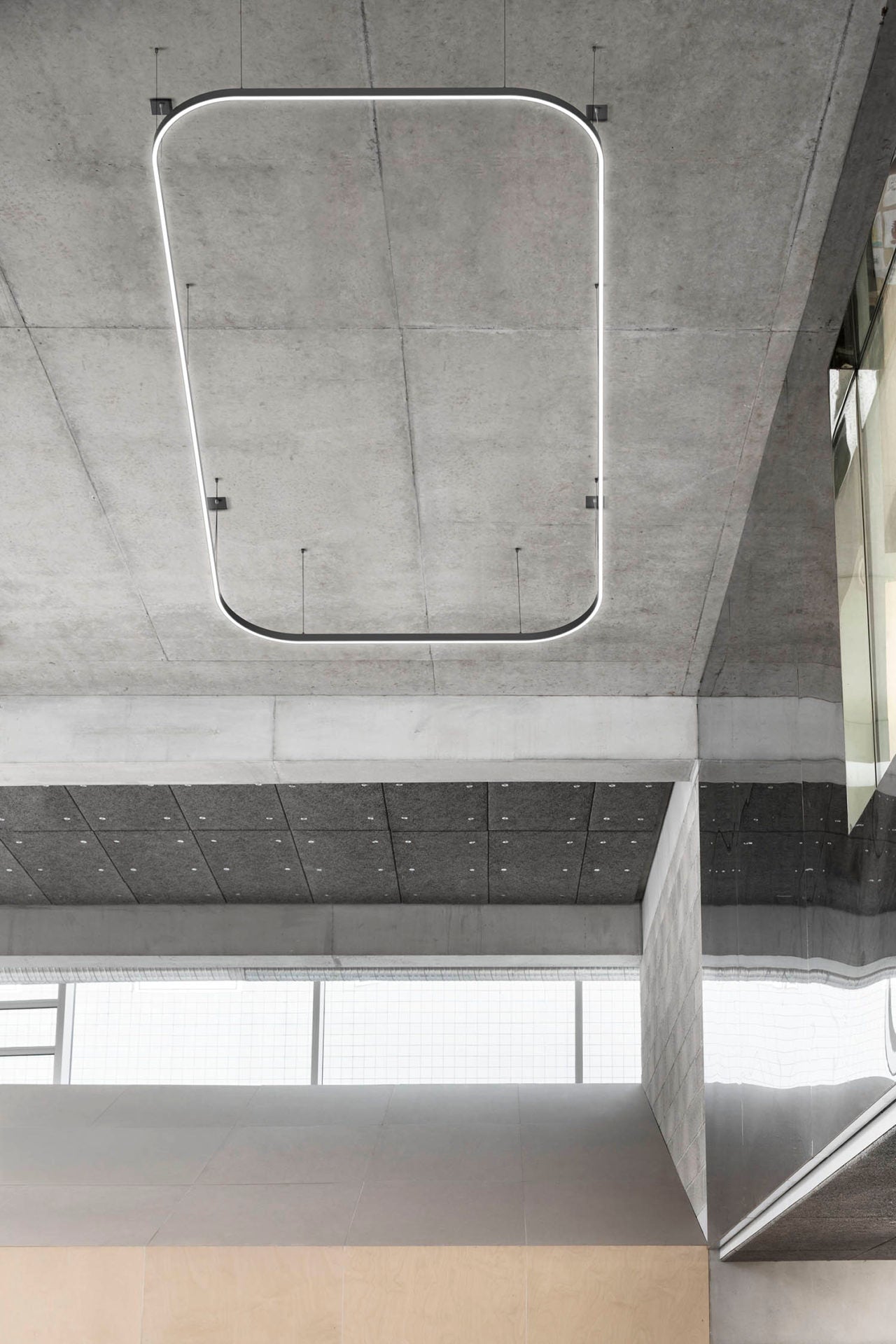 The ZIRKOL suspension lamp family evolves from the classic round luminaire into various shapes. It balances design and lighting, making it essential in architecture. Each model comes in different sizes and finishes, using a unified aluminum profile for a consistent aesthetic. Suitable for residential and public spaces, ZIRKOL offers single downlight or double uplight/downlight emission for optimal visual comfort. The new ZIRKOL ACOUSTIC pendant lamp combines lighting with acoustics, featuring a sound-absorbing circular panel covered in grey recycled polyester fabric for a comfortable atmosphere.